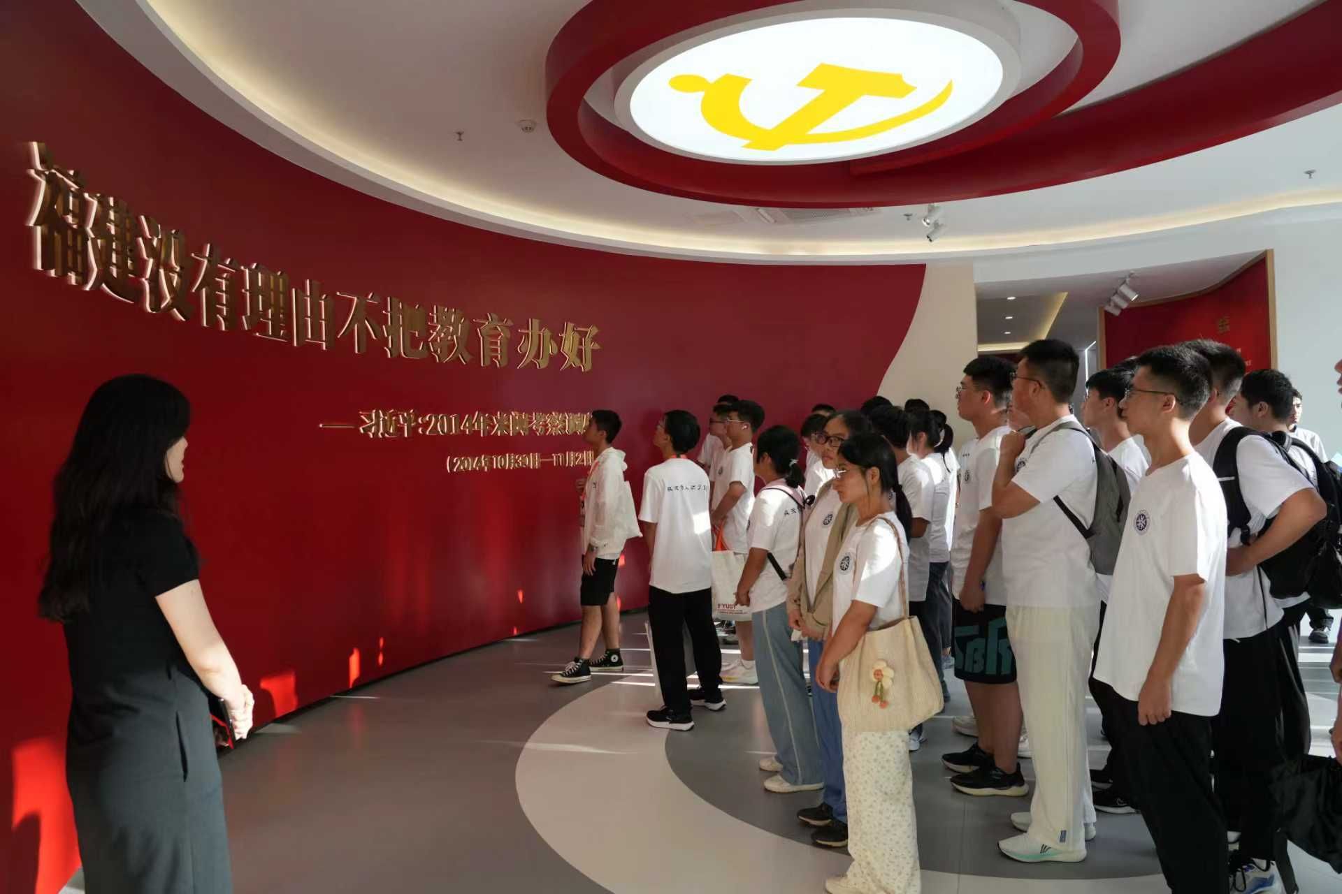 在福耀科技大学党建馆,青年学子们共同追述习近平总书记在福建工作期间关于教育发展、科技创新、人才培养的重要论述与生动实践,深刻学习领会习近平总书记“福建没有理由不把教育办好”重要嘱托的丰富内涵,立志为推动教育强国战略贡献自己的青春力量。