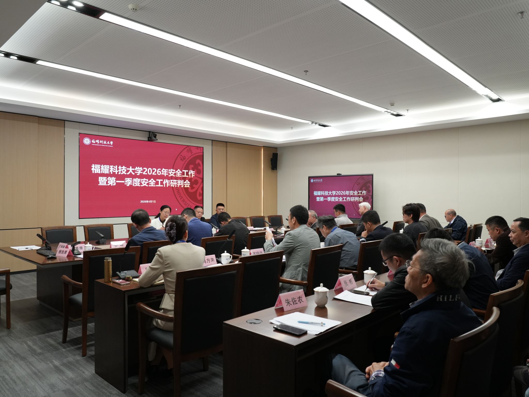 4月1日,福耀科技大学召开2026年安全工作会议暨一季度安全研判会。学校党委书记黄阿火、常务副校长张福利出席会议,党委常务副书记宋姬芳主持会议。学校安全稳定工作领导小组全体成员,各二级单位安全工作分管领...